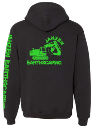 Janzen Earthscaping custom apparel including t-shirts, hats, and hoodies.